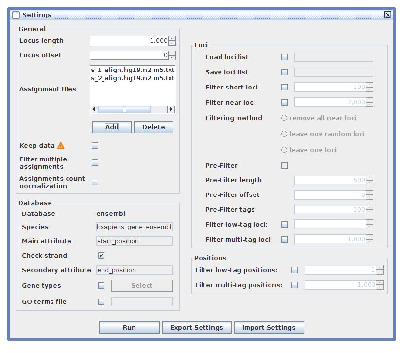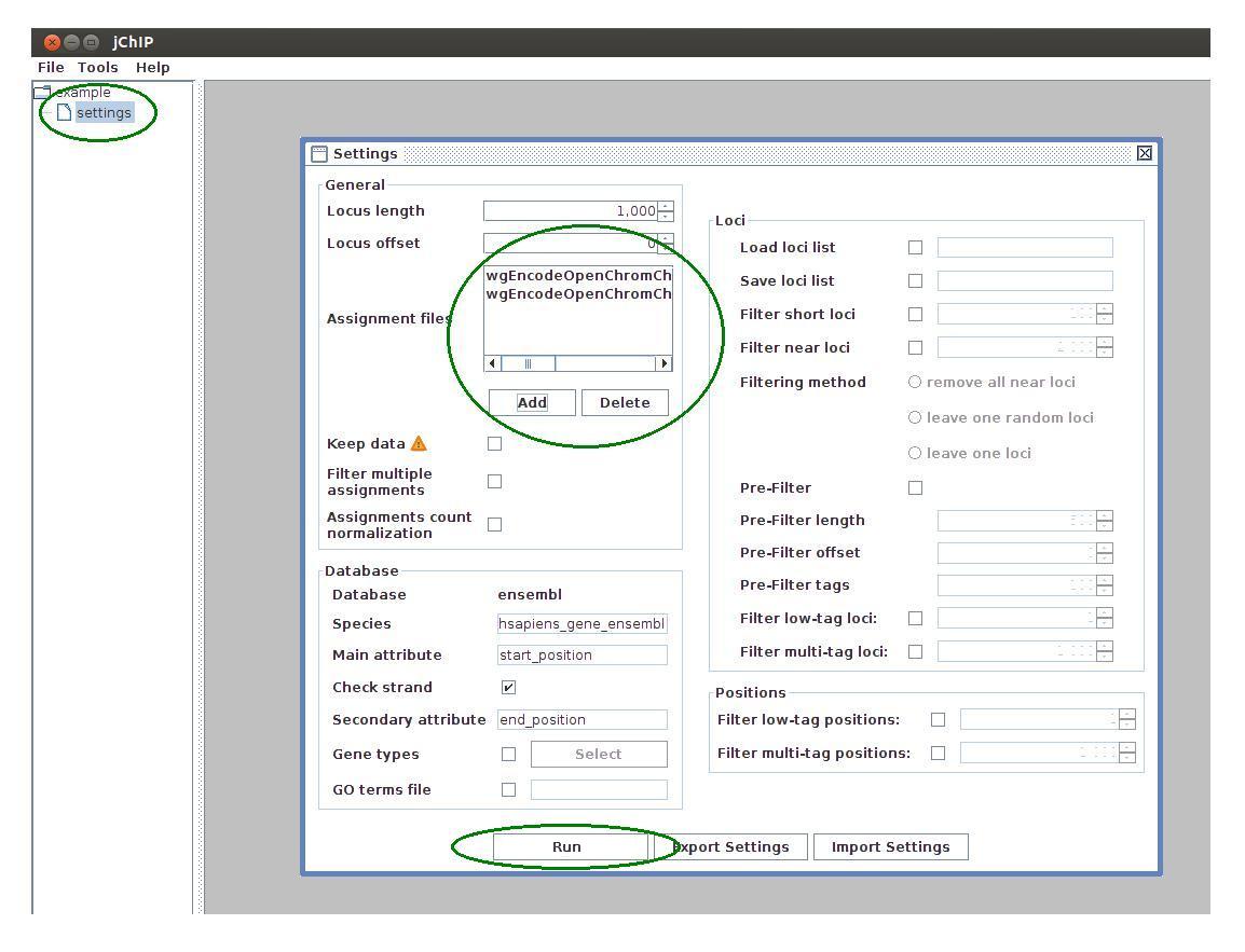 - Add the downloaded data to the assignment files list in the settings frame and click "Run" button"